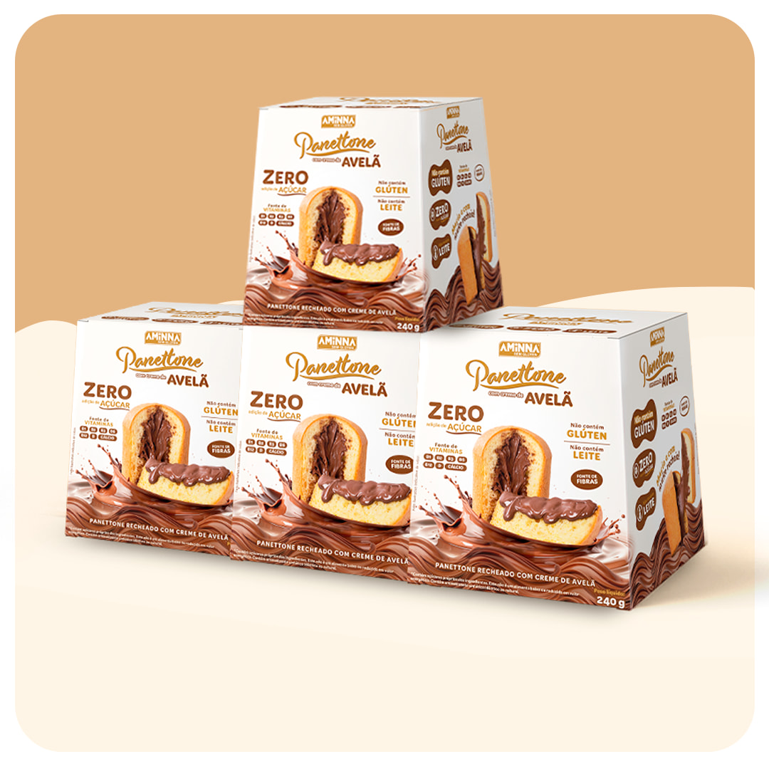 Isento de glúten e de leite e sem açúcar, o Panettone com recheio de Creme de Avelã Aminna de 240 gramas é perfeito para manter as tradições sem riscos de contaminação. É macio e saboroso, e pode ser consumido mesmo fora de época. E com a nova embalagem, é uma linda opção para presentear aos amigos, familiares e todos a quem queremos bem!